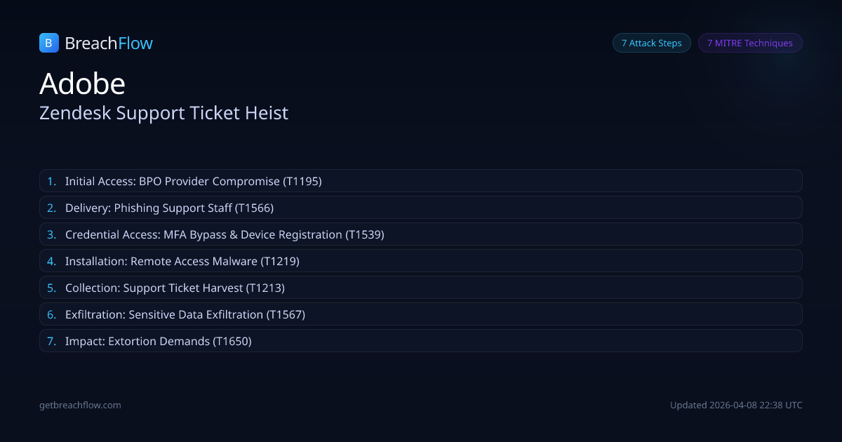 The UNC6783 threat actor, potentially linked to 'Raccoon,' compromised Business Process Outsourcing (BPO) providers to target high-value companies. They utilized social engineering and phishing campaigns, including spoofed Okta login pages and fake security updates, to steal credentials, bypass MFA, deploy remote access malware, and exfiltrate sensitive data, such as 13 million support tickets from Adobe, for extortion.