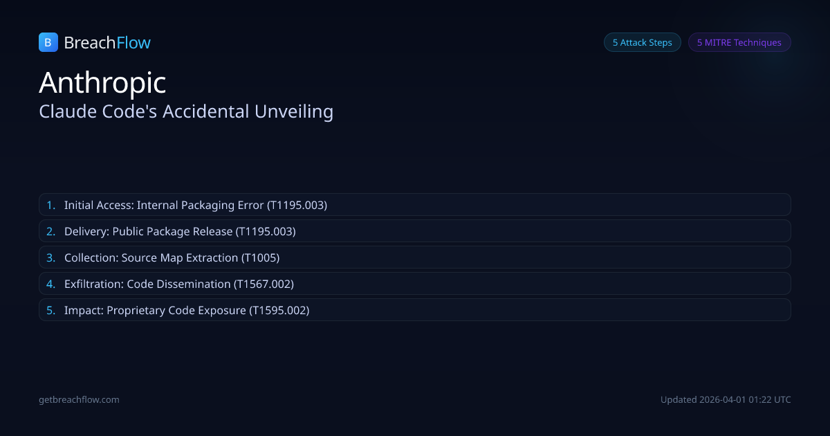 Anthropic accidentally leaked the source code for its Claude Code AI assistant, including 1,900 files and 500,000 lines of code, when version 2.1.88 was published to NPM with an embedded source map file. The company confirmed no customer data or credentials were exposed, attributing it to human error during release packaging.