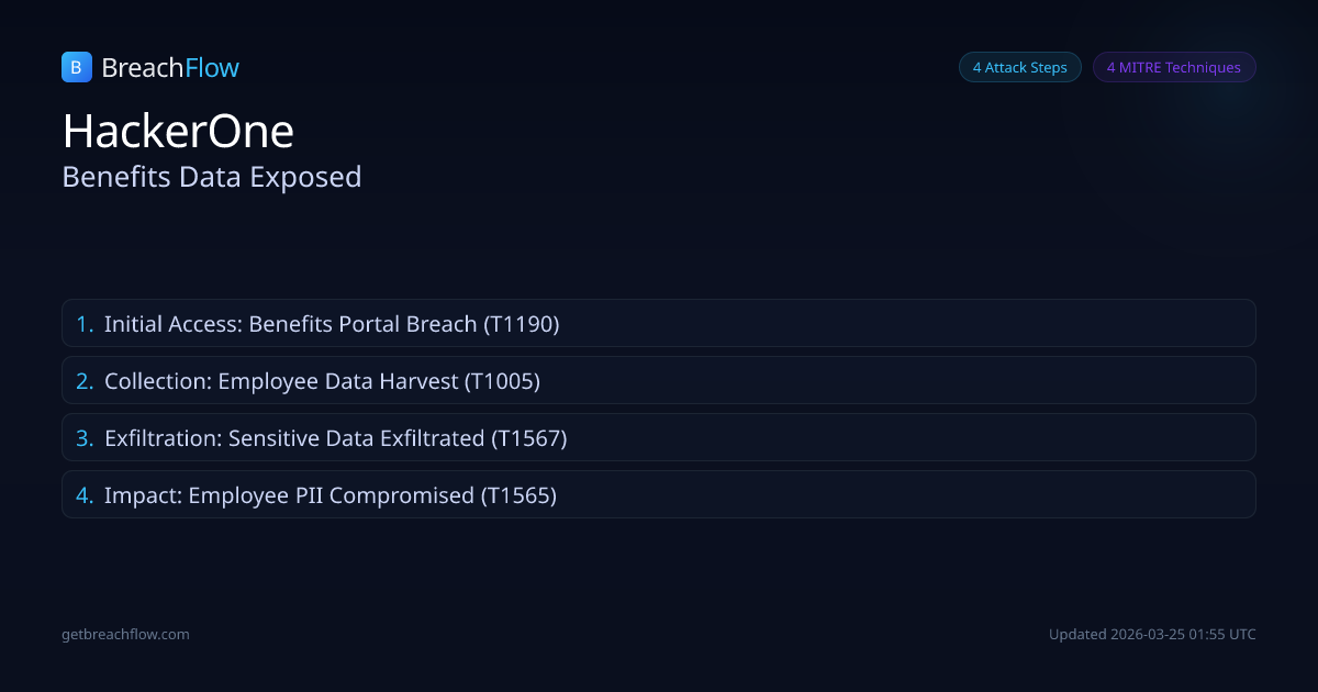 Bug bounty platform HackerOne disclosed a data breach affecting 287 employees and their dependents after its benefits administrator, Navia, was hacked. The breach exposed sensitive PII including Social Security numbers, names, addresses, and dates of birth due to a Broken Object Level Authorization (BOLA) vulnerability.