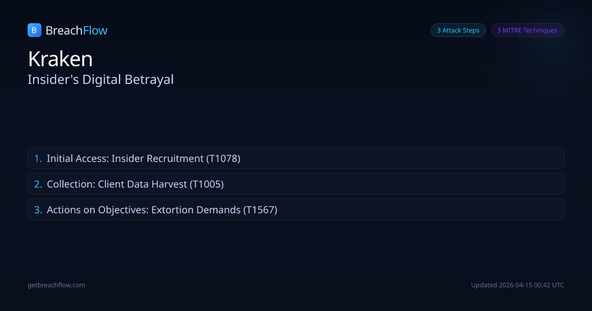 A cybercrime group attempted to extort Kraken after recruiting at least two internal support employees to improperly access limited client support data from approximately 2,000 accounts. The threat actors threatened to release videos of internal systems showing client data.